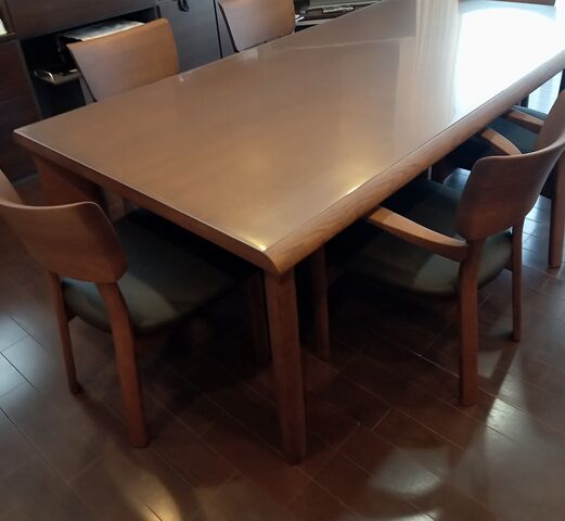 2023年04月01日 シラカワ ダイニングテーブル再塗装 200x100 シラカワダイニングテーブル再塗装(シラカワ本社にて) SO色からBP色の変更脚 H65用作成 チェアー BIOSU S-583購入されました。シラカワの商品であれば、天板色変更、脚作成できます。